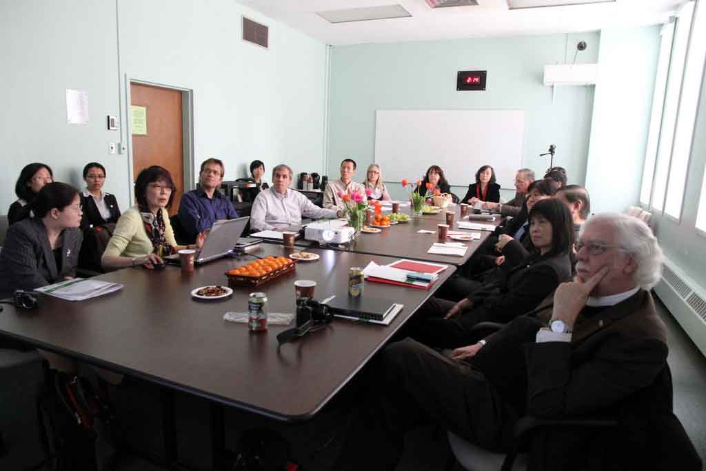 麦大孔院院长盛余韵教授致辞并主持会议,人文学院院长Suzane Crosta也列席了本次会议,并在会上与大家分享了孔子学院筹建过程中的经验和体会。与会代表就会议的四个议题进行了热烈讨论,来自埃德蒙顿孔子学院的Stuart Wachowicz和李伟分享了他们在可持续发展这个领域的有益尝试;魁北克孔子学院的Don walker 和荣萌分享了他们在推广汉语教学和文化活动的一些成绩;New Brunswick的藤菁和杨建华分享了他们在中小学推进汉语项目的经验;李彦教授对孔子学院在建设中遇到的问题进行了回顾;新建孔子学院的院长们如罗澄、路春雷、Randy Zadra,Bill Sewell等对孔子学院筹建中的基础工作、课程设置、合作关系、媒体应对等提出了问题及建议。麦克马斯特大学孔子学院就预算、决算的及时制定、理事会的作用、开展文化活动等方面分享了经验。经过与会人员的热烈讨论,会议通过了可持续发展等问题的一致意见。