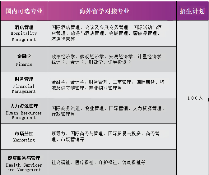 本专业借鉴国际先进的酒店管理教育理念与人才培养模式,结合中国酒店行业发展的独特性,培养具备良好的职业道德、职业素养、职业技能的国际化、应用型酒店及泛服务业高端管理人才。
