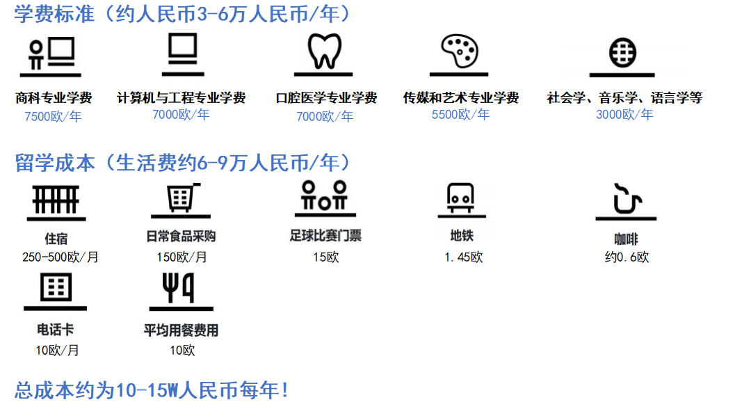 葡萄牙本科学制3年,研究生学制1-2年,显著降低求学时间成本。葡萄牙是传统发达国家中留学成本最低国家(10-14w/年),相当于英美1/4,新加坡、澳洲1/3。学校还设置各类学生奖学金;