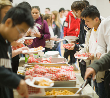 虽然学生每天的晚餐由学校安排,但学生也需要学习做饭。通过确定晚餐内容、列出购物清单、出发去商店,制作晚餐和刷洗餐具,学生会发现他们的独立性得到了多大提升。晚餐时间,学生们需要分摊晚餐费用以及各自分担做饭和餐后刷洗餐具任务,也可以锻炼学生的团队精神。