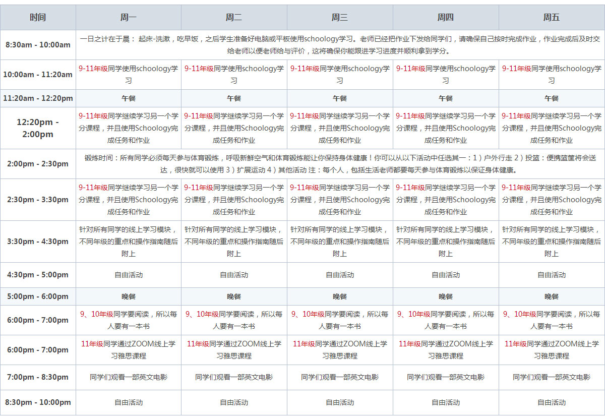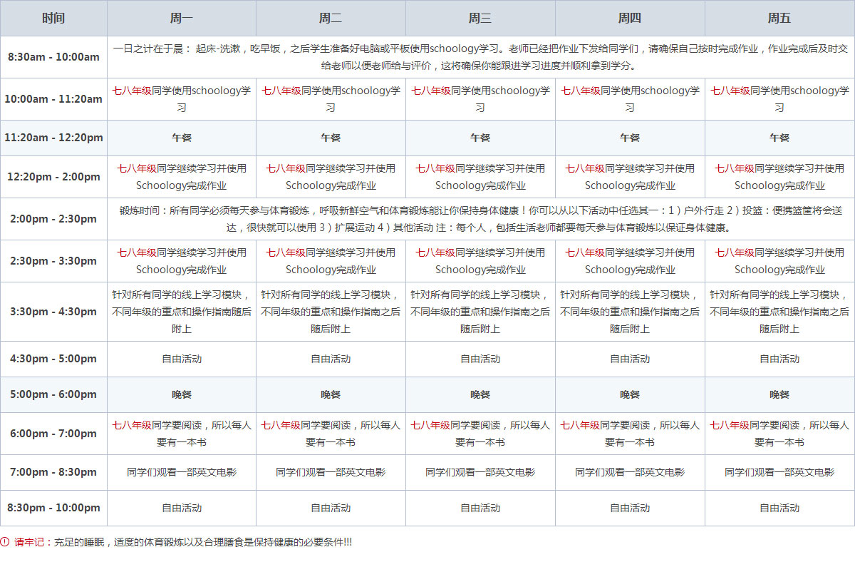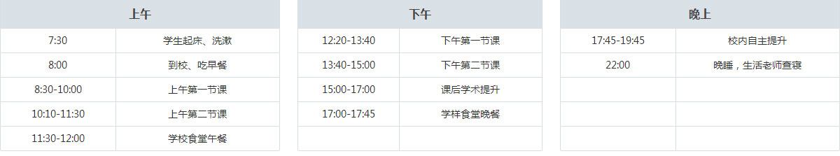 每天晚上,宿舍长会让每一位学生严格执行时间表,时间表包括家庭作业,个人学习、完成时间、清扫时间,当然,自由活动时间也是少不了的。这个时间表帮助学生培养良好的学习生活习惯,久而久之,培养学生的独立性和时间管理能力。