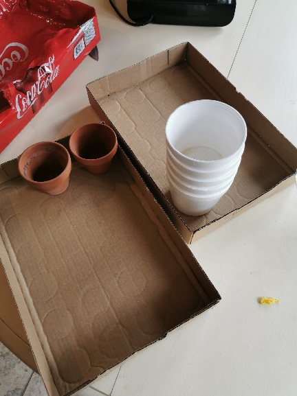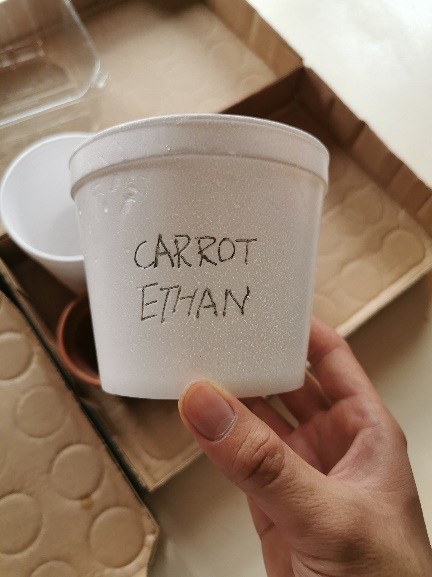 就是育种,大家一起废物利用,找来了很多吃饭用过的饭盒和塑料盒,自制花盆。