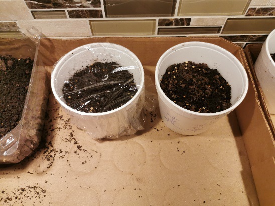 2)在花盆上盖上保险滤膜VS盖上保险滤膜的。