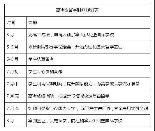 其次,伊利堡国际学校北美名校直通项目暨高考留学双保险计划在时间上如何规划?