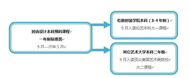 学制两年,每年9月份开学,隔年5月份结束。学生将在第二年期中冲击中央圣马丁时装专业本科申请,并将在毕业后获得英国国家考试局颁发的服装专科文凭,全球认可。
