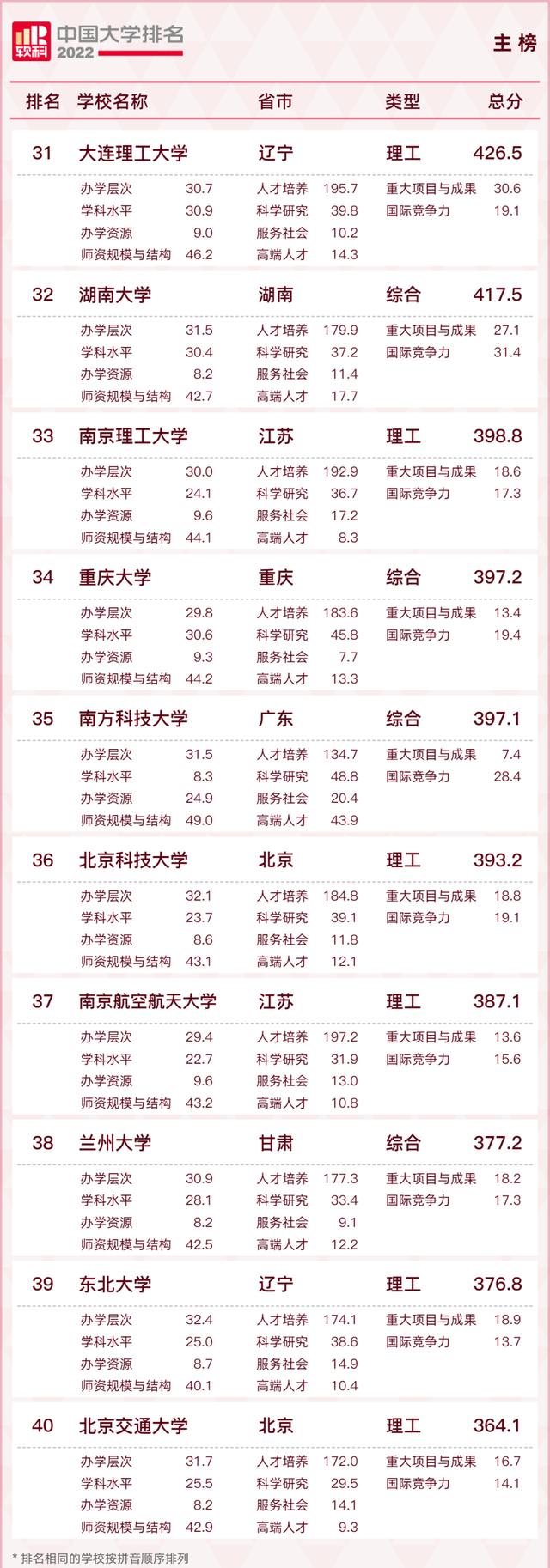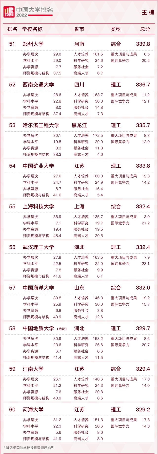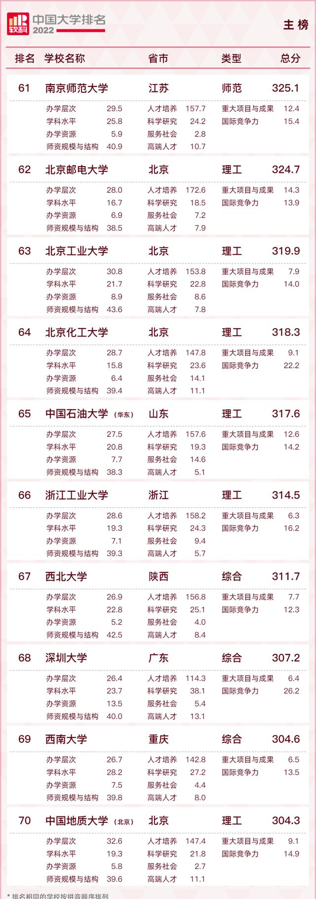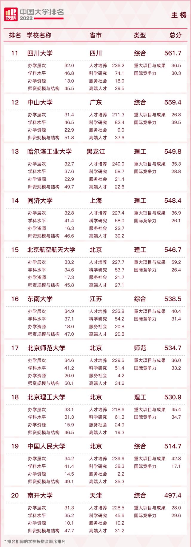 下面是2022软科中国大学00榜单: