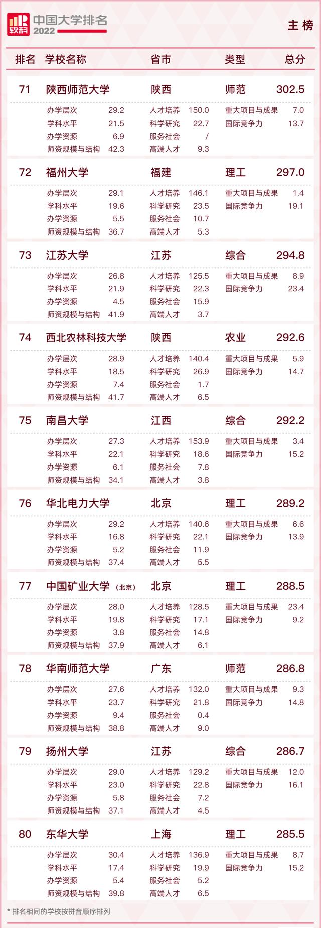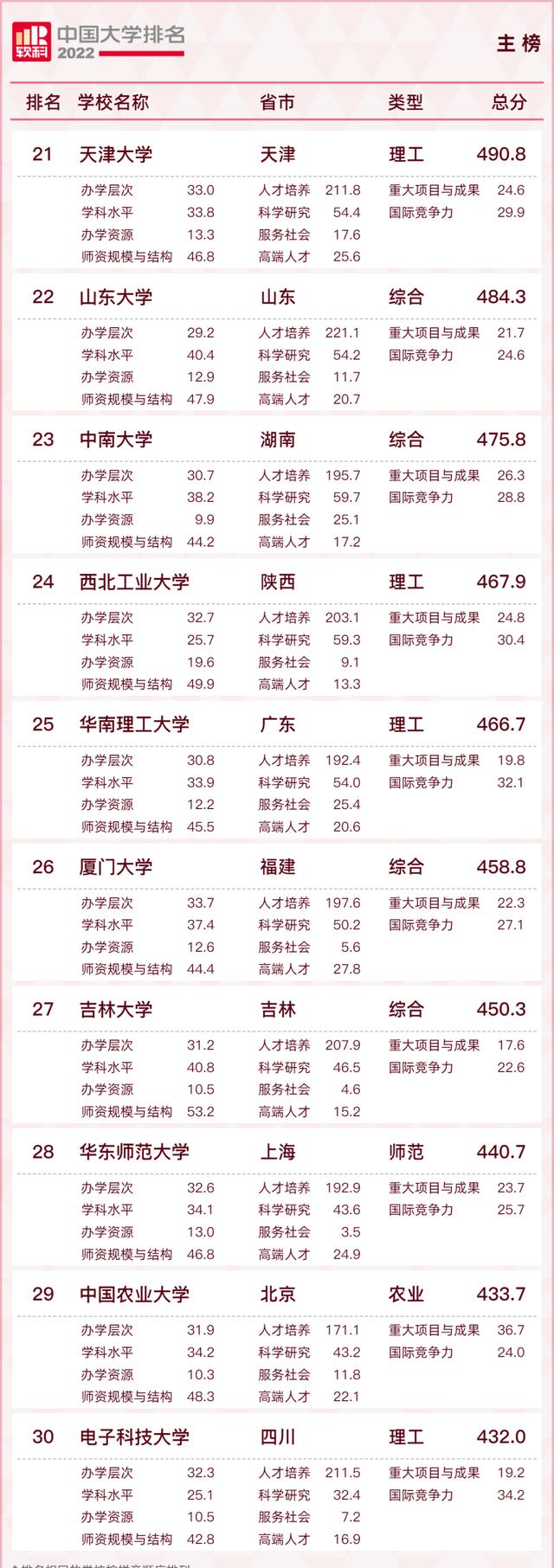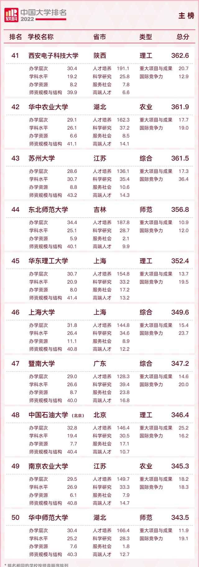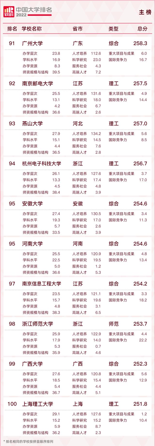 下面是2022软科中国大学00榜单: