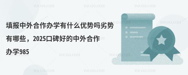 中外合作办学有什么优劣势吗?填报中外合作办学留学的优点主要有三个:一般情况下录取分比非合作办学的该校分数线低、出国留学很方便、大学生活更丰富多彩。按照录取分数来说,中外合作办学专业的分数,参照学校非合作办学的普通专业,都是偏低的(当然也需要具体学校具体分析,不同的中外合作专业导致其分数也不同,不能等量齐观)。