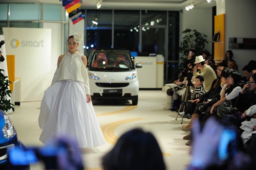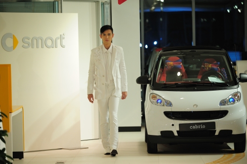 本次时装秀(White Project Fashion Show)的主题围绕白色与环保展开,为了契合本次主题,学生们所有作品的选材均为天然纤维材质的白色衣料,如蚕丝、麻、皮革等,而这样的环保理念正好与奔驰时尚小车SMART相符,故而有了这场珠联璧合的时尚展秀。那一套套白色且环保的时装,或华丽精美,或可爱俏皮,或帅气逼人,均是学生们最近三个月以来的学习成果与创作心血,也是他们在期末交出的最好答卷。