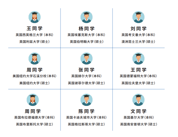 第四年(国外大学):英、美、加、澳等60余所教育部认可高校,学习相应本科课程并获得学士学位。