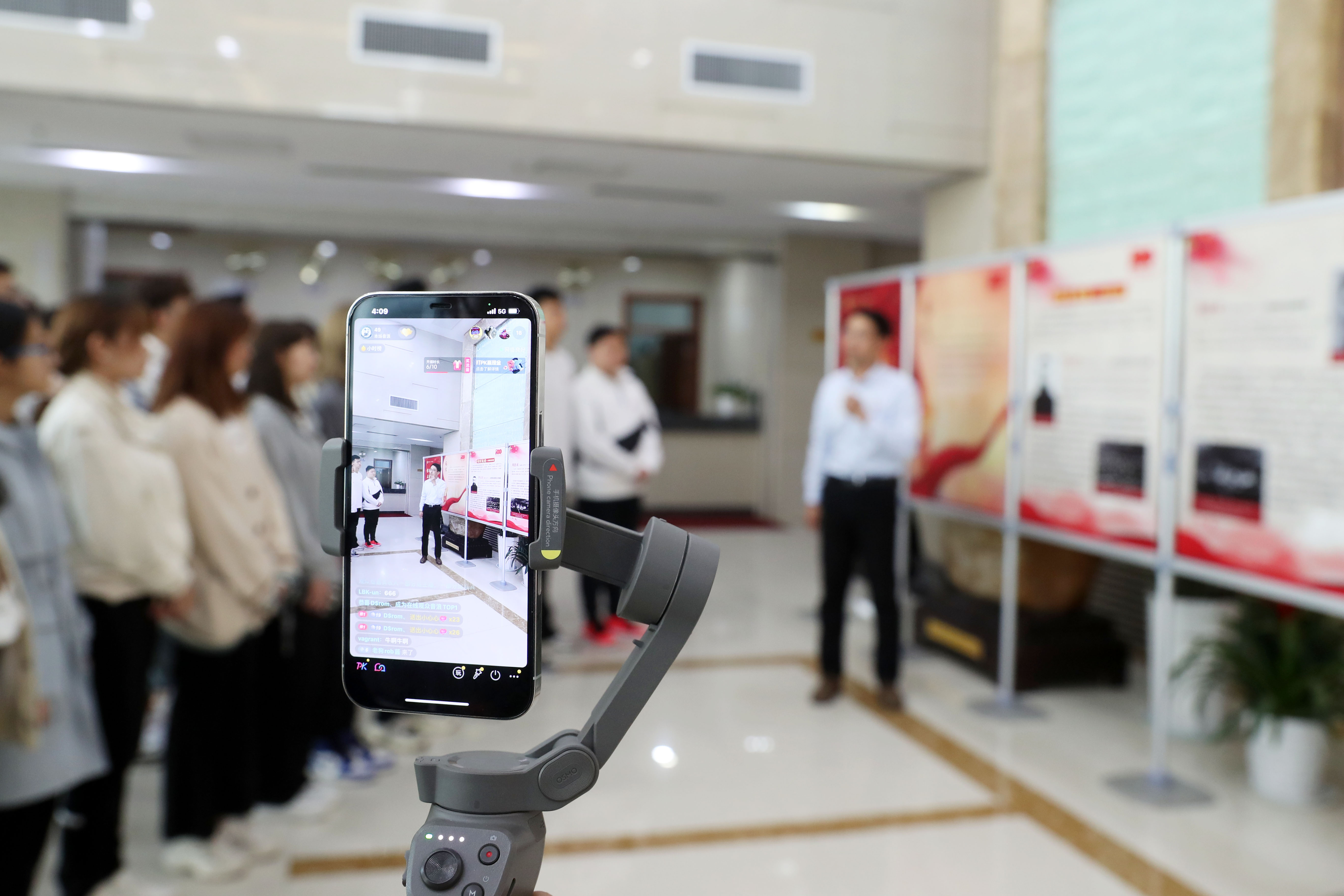 4月27日16时许,在培训楼大厅15块“学百年留学史·立留学报国志”主题展板前,中国石油大学出国留学基地的学生们正聚精会神地聆听讲解。与此同时,在海内外学习、工作的出国留学培训学生也通过手机、电脑参与了此次活动。