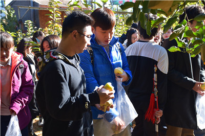 行走在秋色的山野间的同学们,一路上见到的、闻到的、感受到的都是清爽和成熟的气息。漫山遍野的紫红、青绿、金黄,怡神养目,给人以无限的遐想——每一片叶子都是一个金灿灿的微笑、每一粒果实都是一个实诚诚的快乐!