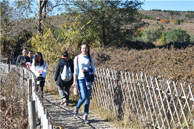 秋高气爽,太阳暖暖的,在这收获的季节里,外经贸信息学院国际课程班组织了一年一度的秋游活动,同学们怀着无比激动的心情踏上了这次秋游的目的地-五彩浅山步道。漫步在成熟和清香的气氛中,金色的秋叶飘飘而舞,一片片一丛丛,五颜六色的野花点缀其中,虽不规则,但在蓝天、白云、飞鸟的衬托下,一幅秋高气爽的《金秋图》还是徐徐地展现在了人们的眼前。