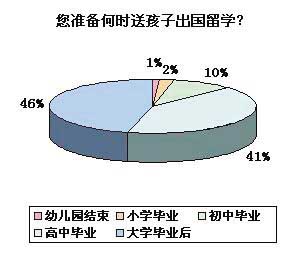 随着国外大学、高中纷纷来华招生,出国留学开始变成中国家庭餐桌上的议题,尤其是高中后出国渐成主流。46%的家长表示计划在大学毕业后送孩子出国深造,选择高中毕业后送孩子留学的家长占到41%,特别在孩子还未上大学的家长中,选择高中毕业后送孩子出国留学均为其首选,这意味着今后将有更多中国学生选择在国外就读本科。